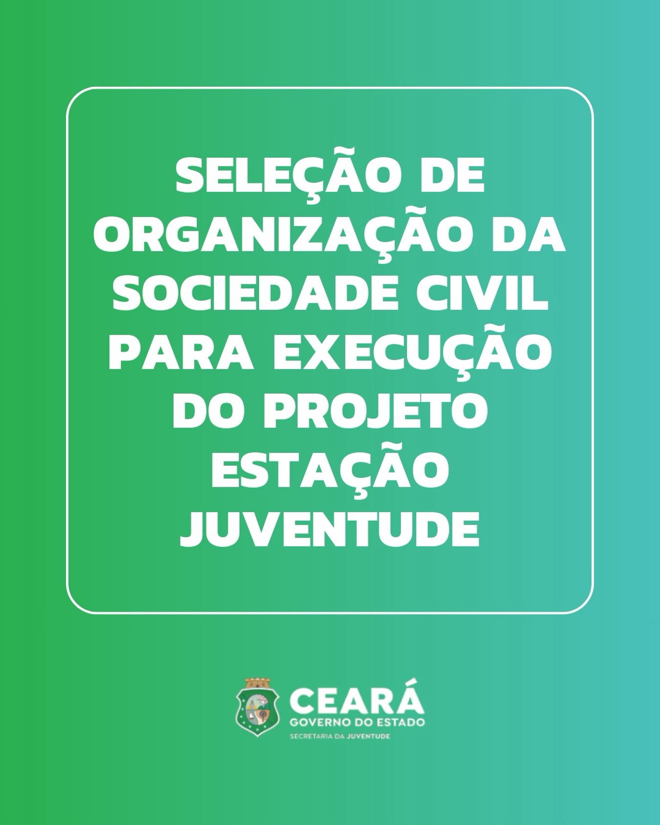 O Governo do Ceará, através da Secretaria da Proteção Social, e da Secretaria da Juventude, seleciona Organização da Sociedade Civil (OSC) para a execução do Projeto Estação Juventude – Inclusão Ativa.