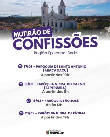 Desde o dia 03 de março, as paróquias que fazem parte da Região Episcopal Sede estão realizando o Mutirão de Confissões em diversas localidades dos municípios de Sobral e Forquilha, incluindo o distrito de Jordão.