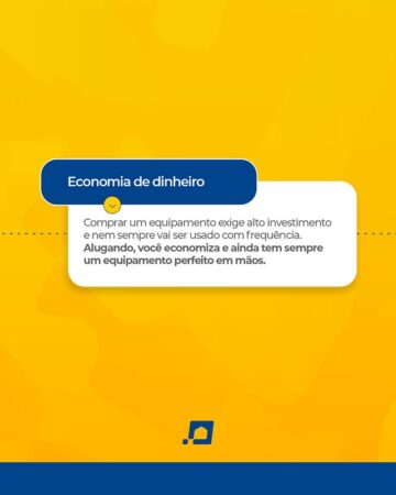 Com a locação, você usa o equipamento certo na hora certa, evita investimento alto e ainda se livra de manutenção, armazenamento e outras dores de cabeça.