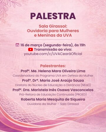 A Universidade Estadual Vale do Acaraú (UVA) realizará a 2ª edição do UVA + Mulher, iniciativa voltada ao diálogo, à reflexão e ao fortalecimento das pautas relacionadas à valorização das mulheres no ambiente acadêmico e na sociedade.