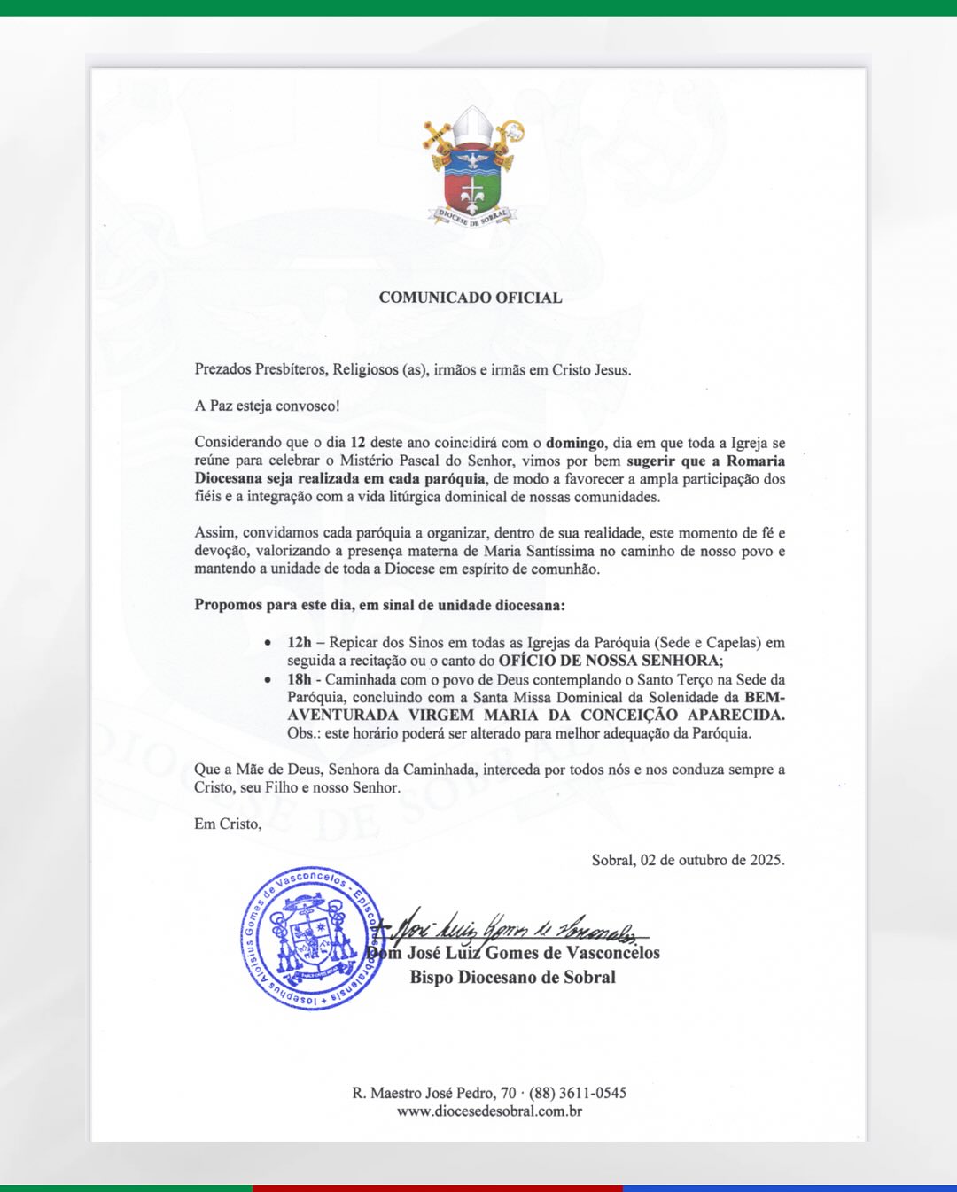 A Diocese de Sobral, por meio de comunicado oficial assinado pelo bispo Dom José Luiz…