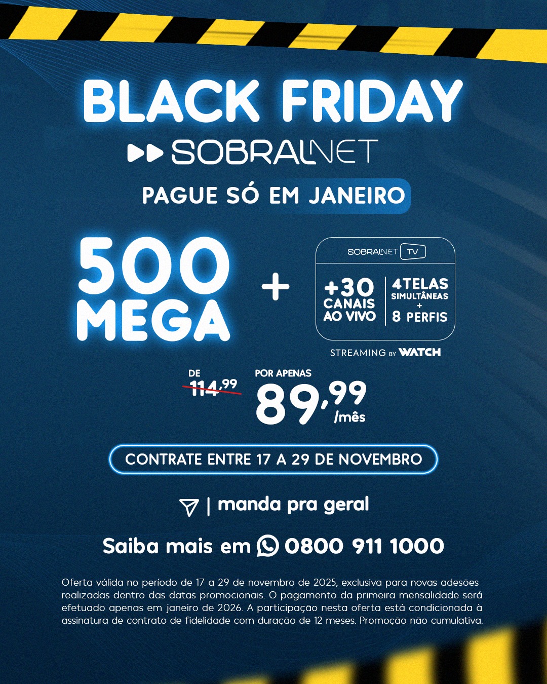 A Black Friday Sobralnet chegou com a melhor oferta do ano! Assine agora 500 MEGA…