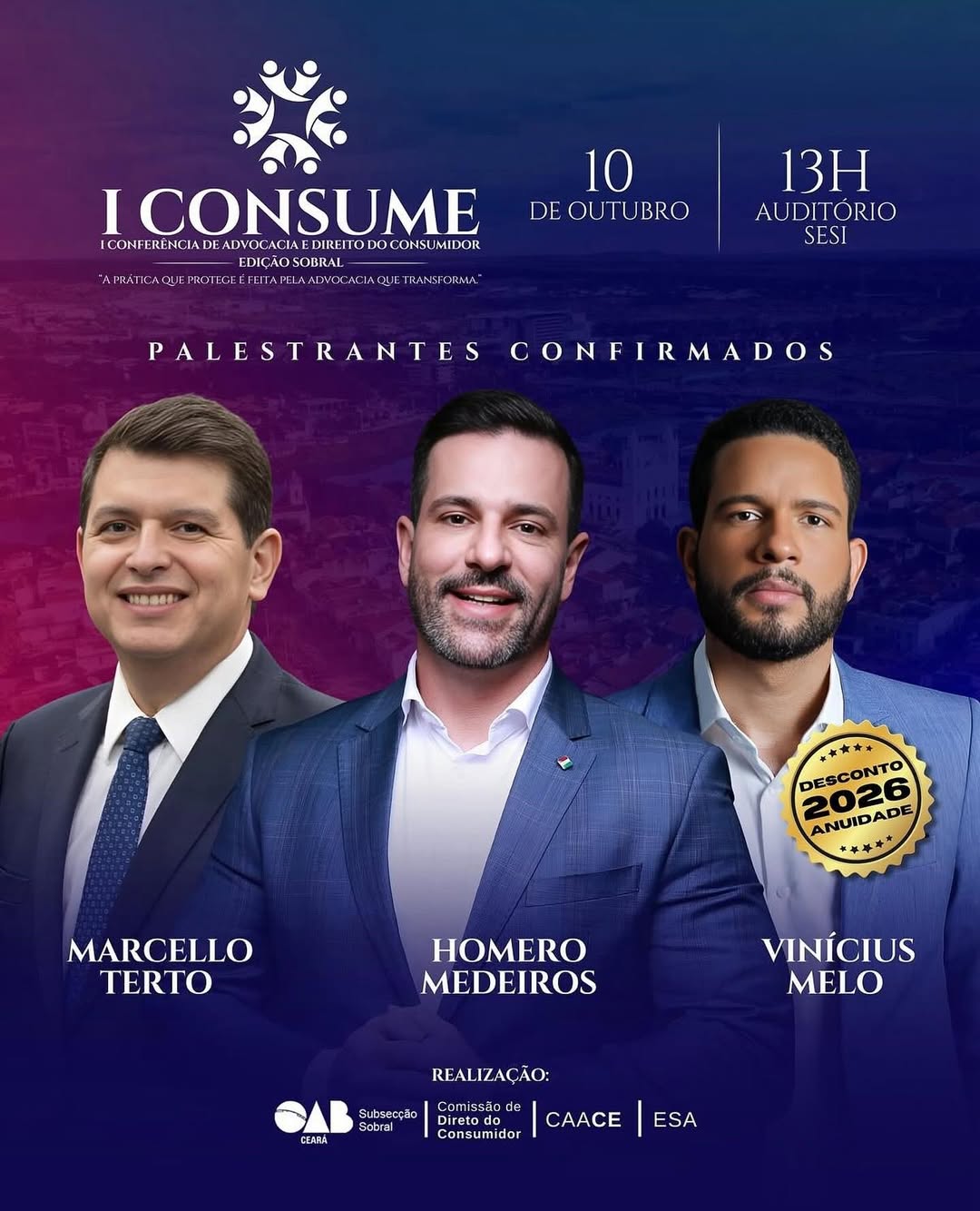 Sobral será palco da I CONSUME – Conferência de Advocacia e Direito do Consumidor, que…