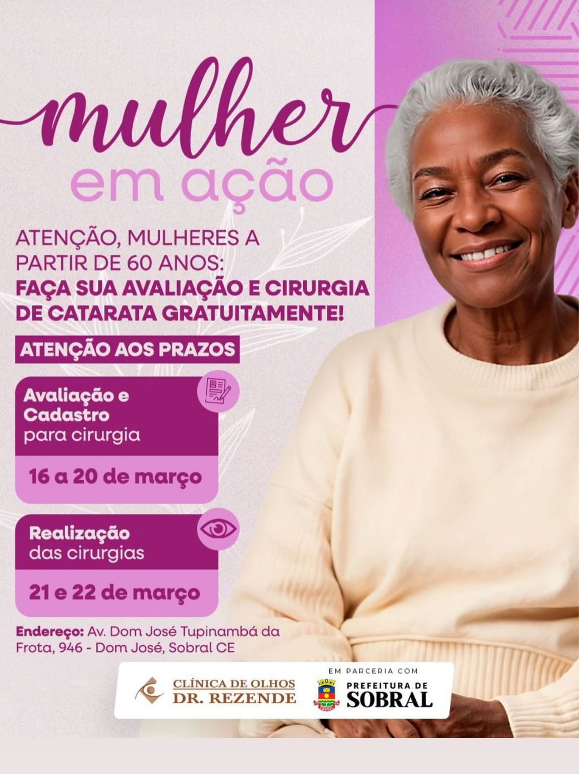 Mulheres com 60 anos ou mais terão acesso à avaliação e cirurgia de catarata gratuita…